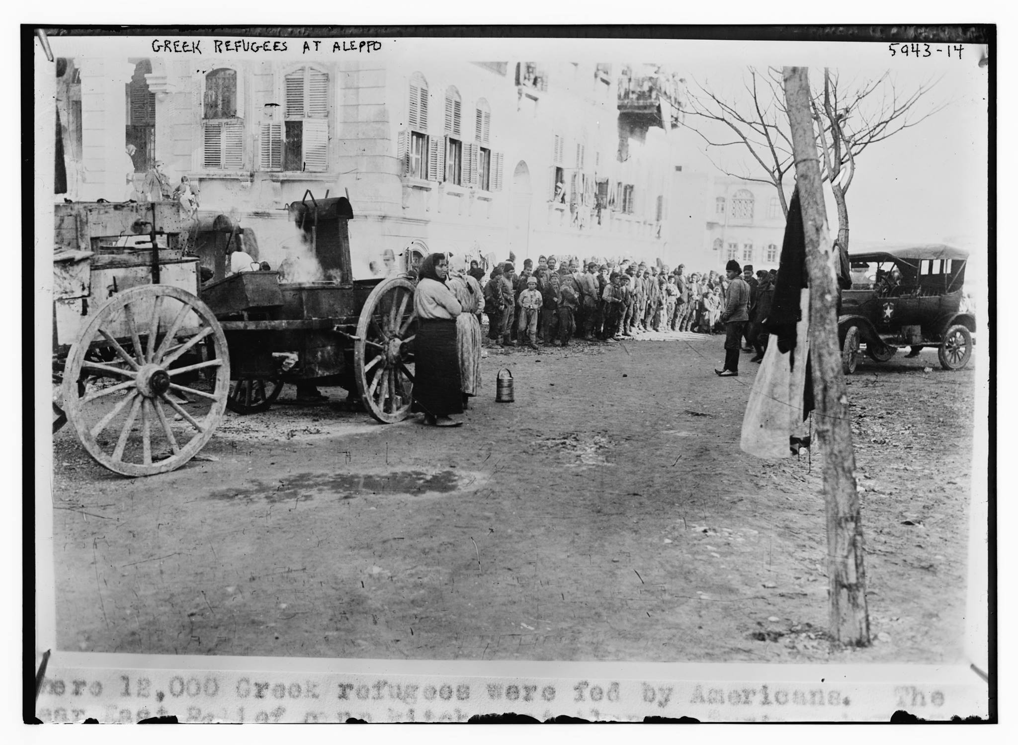 Δεν ήταν μόνο μοίρα των Σύρων να γίνονται πρόσφυγες στην Ελλάδα. Και οι Έλληνες έφτασαν κάποτε κυνηγημένοι στη Συρία, ζητώντας προστασία. Σε αυτή την σπάνια φωτογραφία από τη Βιβλιοθήκη του Κογκρέσου, Έλληνες πρόσφυγες από τη Μικρά Ασία, καταφεύγουν στο Χαλέπι, κατά την ανταλλαγή των πληθυσμών το 1923, μετά τη Συνθήκη της Λωζάνης. Τότε, 17.000 εξαθλιωμένοι Έλληνες κατέφθασαν στις μεγάλες Συριακές πόλεις για να εγκατασταθούν, πρόσκαιρα ή και μόνιμα. Στη λεζάντα της φωτογραφίας, που προφανώς εικονίζει μια σκηνή συσσιτίου, αναγράφεται ότι οι Αμερικανοί σίτισαν 12.000 Έλληνες.