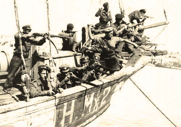 The first naval units of the Greek partisans appeared in March-April 1943. After the Italian capitulation in September, the ELAN was set up and the first important stable bases began to appear at various points on the coast. The vessels used by the partisans were small boats armed with captured German guns: caïques, fishing boats and motor launches. They engaged in harrying enemy transport vessels, transporting friendly forces, and escorting and protecting transport vessels. Other craft, not suitable for arming, carried out transport or liaison duties. More than 100 boats with 1,200 men and women served with the Partisan Navy. After a short war against British and Royal Greek forces in December 1944-January 1945, the ELAN was demobilized on 28 February, 1945 and its vessels handed over to the British and Greek naval forces.