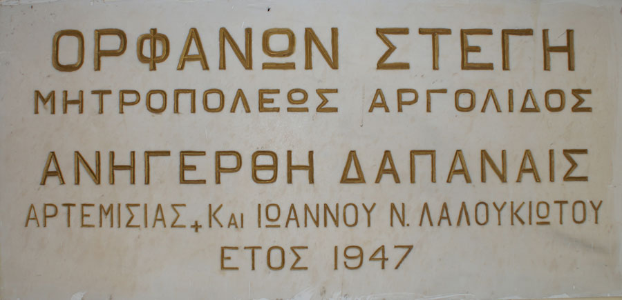 Εντοιχισμένη μαρμάρινη πινακίδα στο σημερινό Γηροκομείο.