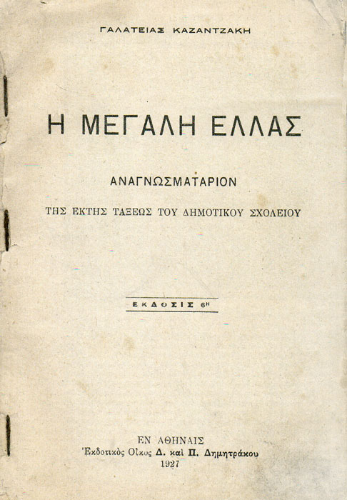 Γαλάτειας Καζαντζάκη, Η Μεγάλη Ελλάς. Εκδοτικός οίκος Δημητρίου και Πέτρου Δημητράκου, Αθήνα, 1927.