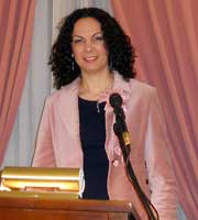 Η Ελένη Λεζέ στο βήμα του «Δαναού», 8 Μαρτίου 2015.