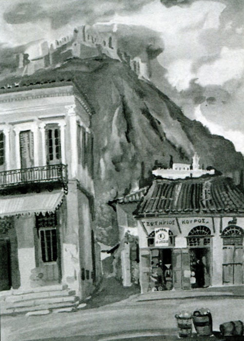 Τα στέκια του Άργους. Δίκτυα κοινωνικών σχέσεων στον ημιαστικό χώρο (1840 – 1940) – © Γεώργιος Η. Κόνδης, Πρακτικά Επιστημονικής Συνάντησης 22-23 Μαρτίου 2003, Σύλλογος Αργείων «Ο Δαναός», τόμος 4, 2009. » Χάνι Κούρου στην πλατεία Λαϊκής Αγοράς Άργους. Μοναδική εικόνα ο πίνακας της Ντιάνας Αντωνακάτου.