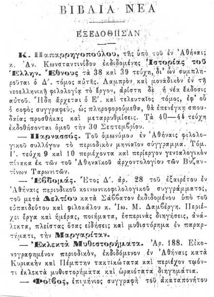 - ΕΥΘΥΝΗ: Εφημερίς Πολιτική, Φιλολογική και των Ειδήσεων, 1883, φ. 2-3.