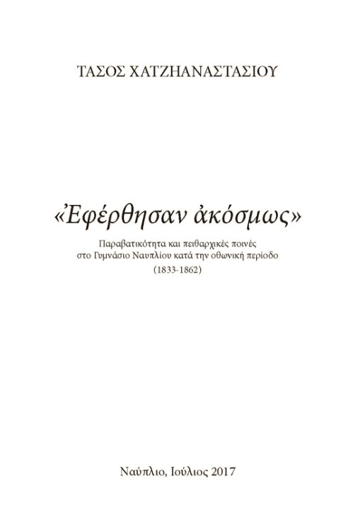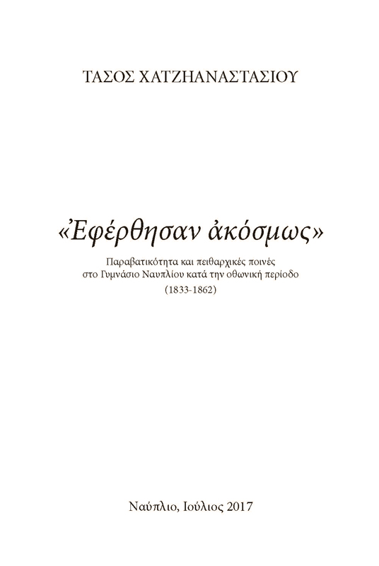 «Εφέρθησαν ακόσμως» – Παραβατικότητα και πειθαρχικές ποινές στο Γυμνάσιο Ναυπλίου (1833-1862) » «Εφέρθησαν ακόσμως»
