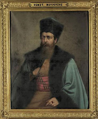 Ο Κωνσταντίνος Μουρούζης, ηγεμόνας της Μολδοβλαχίας και παππούς της Ρωξάνδρας Στούρτζα. Ελαιογραφία, έργο της Ελένης Προσαλέντη, 1904. Εθνικό Ιστορικό Μουσείο.