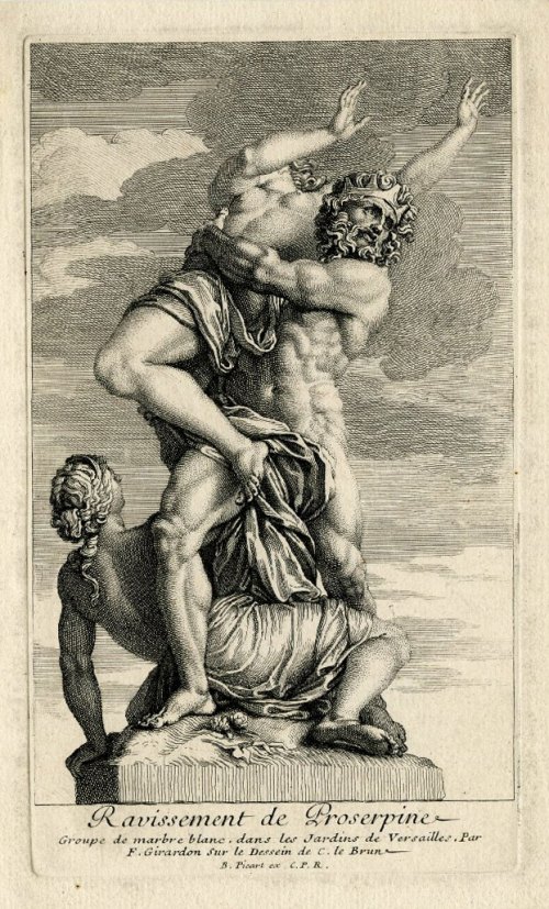 Ο Πλούτωνας αρπάζει την Περσεφόνη και η Κυάνη θρηνεί. Girardon, François (εκδότης), χαλκογραφία. Λονδίνο, Βρετανικό Μουσείο.