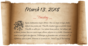 13 Μαρτίου 2018 είναι η 72η ημέρα του έτους 2018 στο Γρηγοριανό ημερολόγιο.