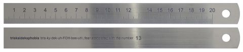 Ο τυχερός χάρακας, ονομάζεται έτσι επειδή δεν έχει τον αριθμό 13, είναι κατασκευασμένος από χάλυβα και έχει ένα κείμενο στο πίσω μέρος σχετικά με το φόβο του αριθμού 13, που ονομάζεται «τρισκαιδεκαφοβία».