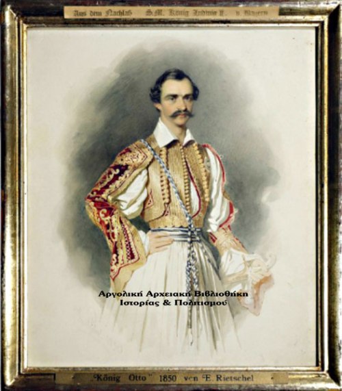Ο Όθωνας (1815-1867), πρίγκιπας της Βαυαρίας και βασιλιάς της Ελλάδας 1832-1862, με ελληνική εθνική φορεσιά, φέροντας στο στήθος του το Μεγαλόσταυρο του Τάγματος του Σωτήρος, έργου του Ernst Wilhelm Rietschel, 1850.