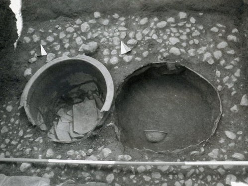 Εικόνα 5: Το πήλινο και το χάλκινο αγγείο με τις ενεπίγραφες πινακίδες.