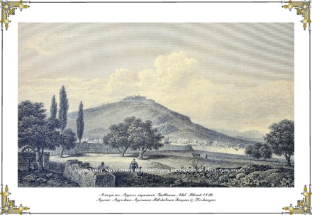 Άποψη του Άργους. Χαρακτικό, Guillaume Abel Blouet (Γκιγιώμ Μπλουέ), 1829. Στη βορειοανατολική πλαγιά της Λάρισας το μοναστήρι της Παναγίας όπου στεγάστηκε το πρώτο νεοελληνικό σχολείο του Άργους το 1798.