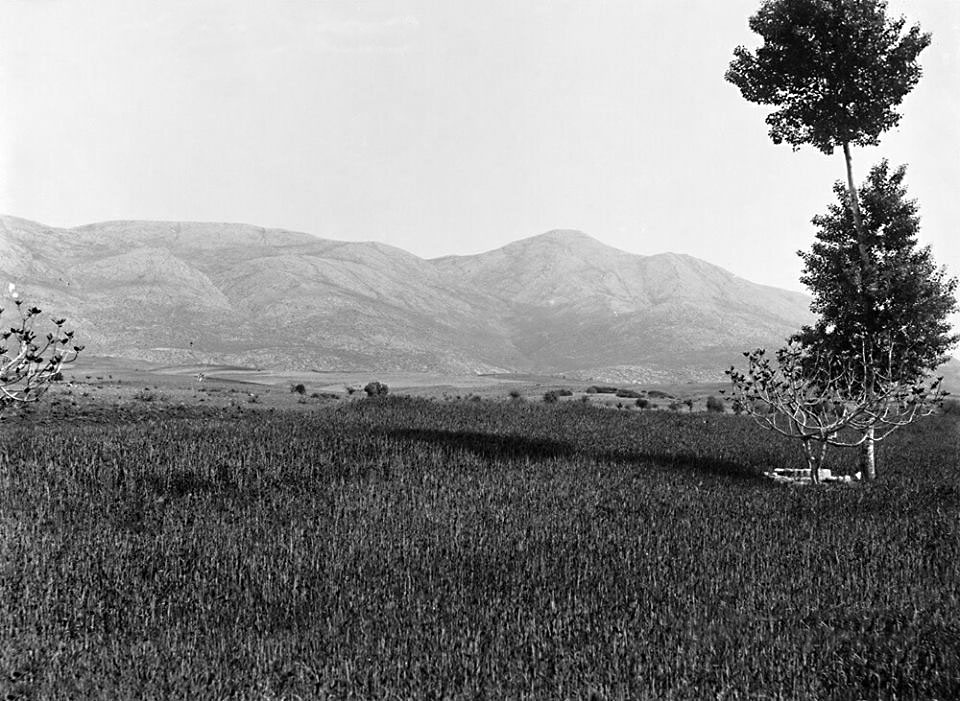 Το όρος Αραχναίο σε φωτογραφία, περίπου του 1937, από το Νότο. Φωτογραφία: Γερμανικό Αρχαιολογικό Ινστιτούτο & Ινστιτούτο Πανεπιστημίου Κολωνίας.