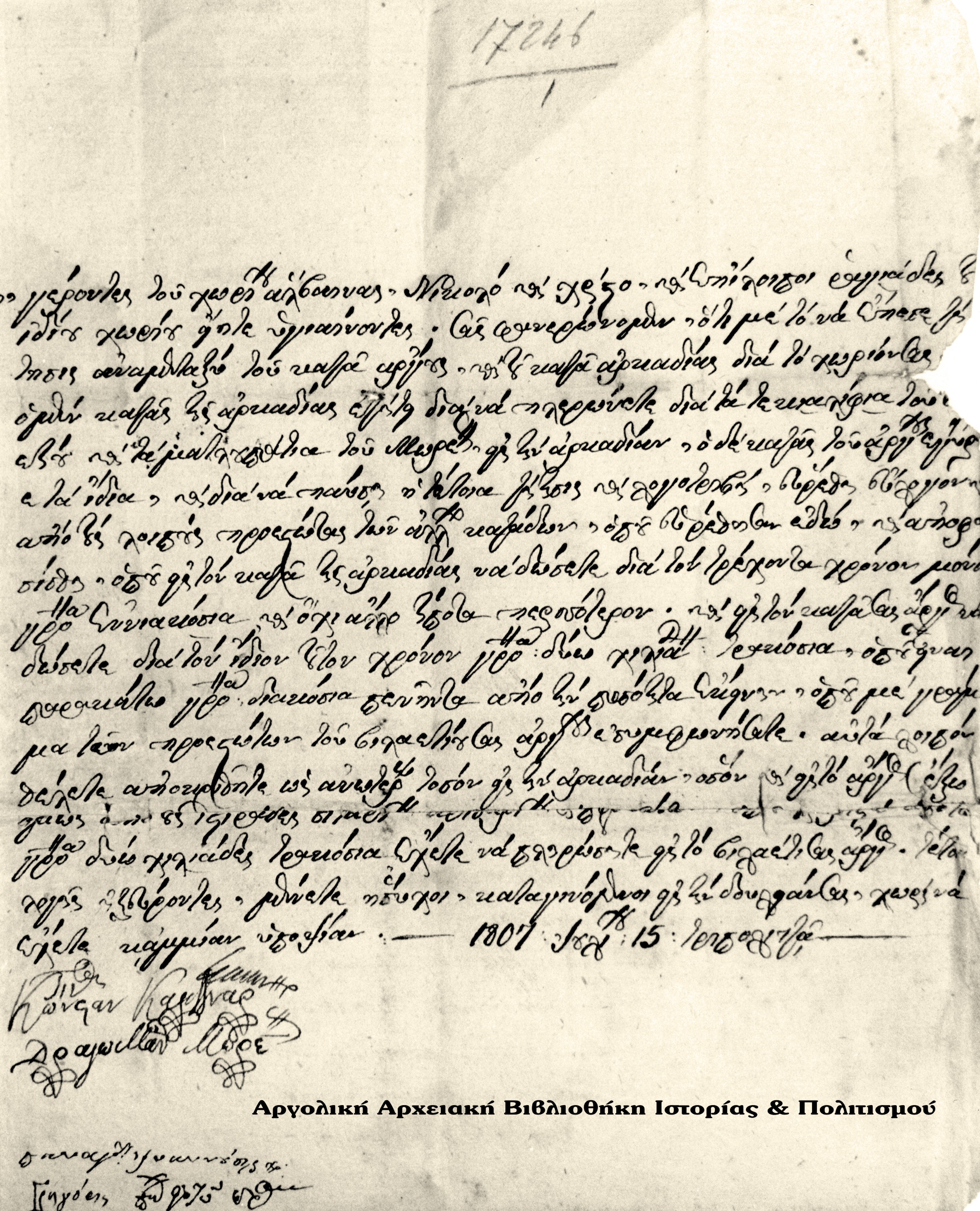 γρόσια εννιακόσια, και όχι άλλο τίποτα περισσότερον. Και εις τον καζά σας Άργος να δώσετε δια τον ίδιον τούτον χρόνον γρόσια δύω χιλιάδες τρακόσια όπου είναι παρακάτω γρόσια διακόσια πενήντα από την ποσότητα εκείνην, όπου με γράμμα των προεστώτων του βιλαετίου σας Άργους εσυμφωνήσατε…