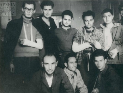 Πολιτικοί εξόριστοι στο 401 Στρατιωτικό Νοσοκομείο (Μίκης θεοδωράκης, Μανώλης Παπουτσάκης, Μανώλης Φουρτούνης), 3/1949, (ΑΣΚΙ/Φωτογραφικό Αρχείο Νίκου Μάργαρη).