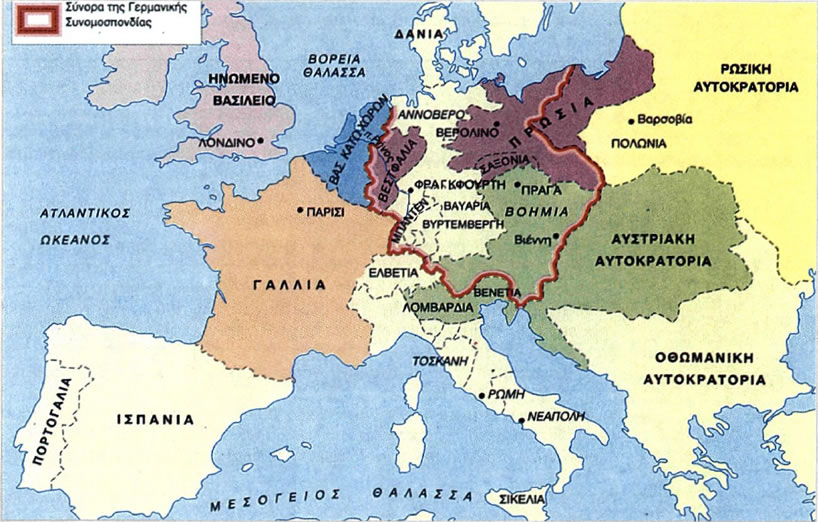 Ο χάρτης της Ευρώπης κατά το 1815, όπως διαμορφώθηκε με Βάση τις αποφάσεις του Συνεδρίου της Βιέννης.