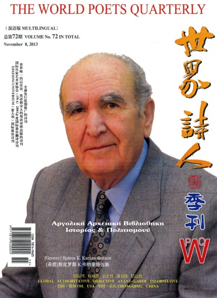 Ο ποιητής Σπύρος Καραμούντζος, στο εξώφυλλο του περιοδικού «Τhe Word Poets Quarterly», το Νοέμβριο του 2013.