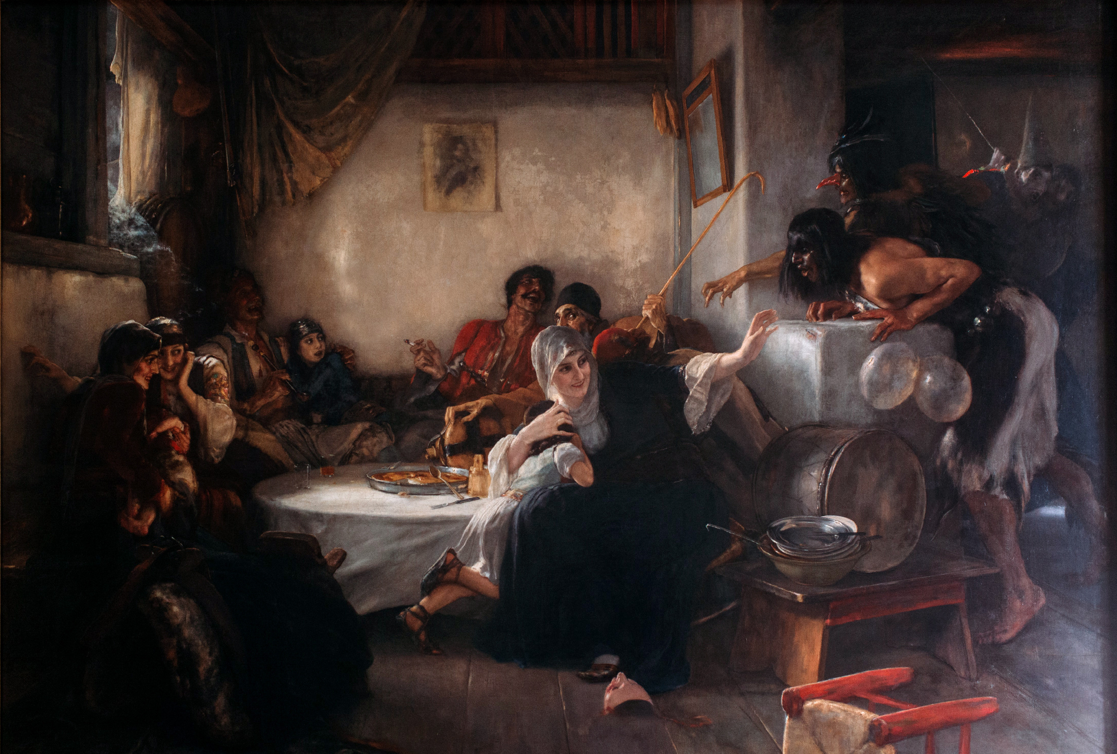 «Το Καρναβάλι στην Αθήνα», 1892. Άλλο ένα έργο με θέμα της απόκριες του σημαντικού έλληνα ζωγράφου από το Σκλαβοχώρι της Τήνου, Νικολάου Γύζη (1842-1901).