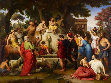 Ο Αίσωπος διηγείται τους μύθους του. Πίνακας του Γερμανού ζωγράφου Johann Michael Wittmer (1802 – 1880). Schlossmuseum, Murnau am Staffelsee, German.