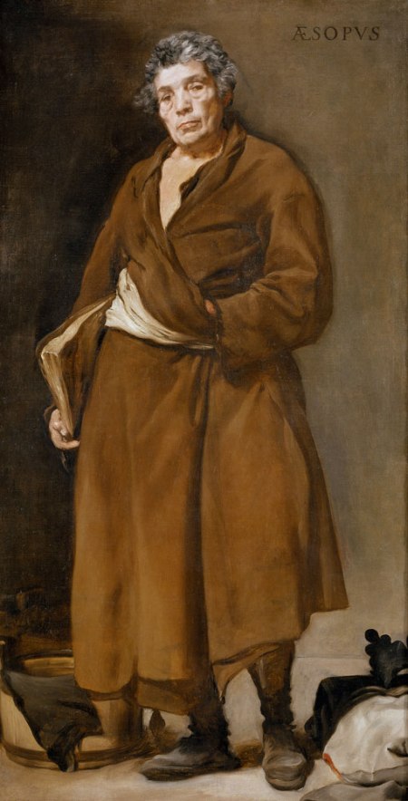 Ο Αίσωπος, 1638. Πίνακας του ισπανού ζωγράφου Ντιέγο Βελάθκεθ (Diego Velázquez, 1599 – 1660). Museo del Prado. Ο Αίσωπος είναι ο διασημότερος από τους αρχαίους μυθοποιούς, αναμφισβήτητος πατέρας του αρχαίου μύθου. Θεωρείται επίσης ο κορυφαίος της λεγόμενης διδακτικής μυθολογίας.