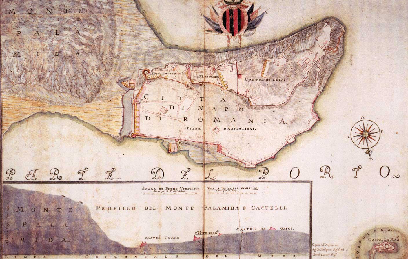 Σχέδιο αριθμός 1. Αποτυπώνεται η πόλη και οι οχυρώσεις της όπως παραλήφθηκαν από τους Βενετούς στα 1686.