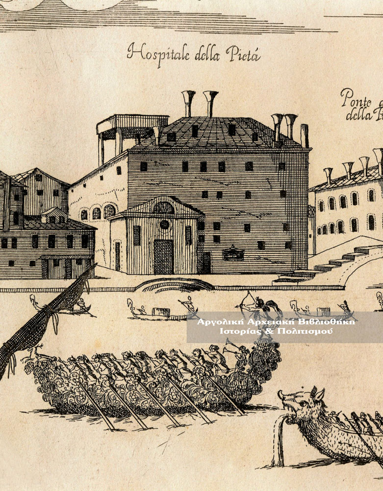 Venice, Perspective view of the Grand Canal with the Ospedale della Pieta, engraving by A. Porzio and A. Della Via, 1686