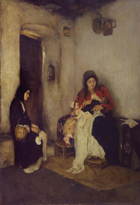 Μέσα σε ένα απλό σπίτι, με την εικόνα της Παναγιάς στον τοίχο, κάθεται μια καλοσυνάτη νέα γυναίκα και θηλάζει ένα ορφανό παιδί, ενώ το δικό της έχει ανέβει σε ένα καρεκλάκι και επιχειρεί να τη φτάσει…