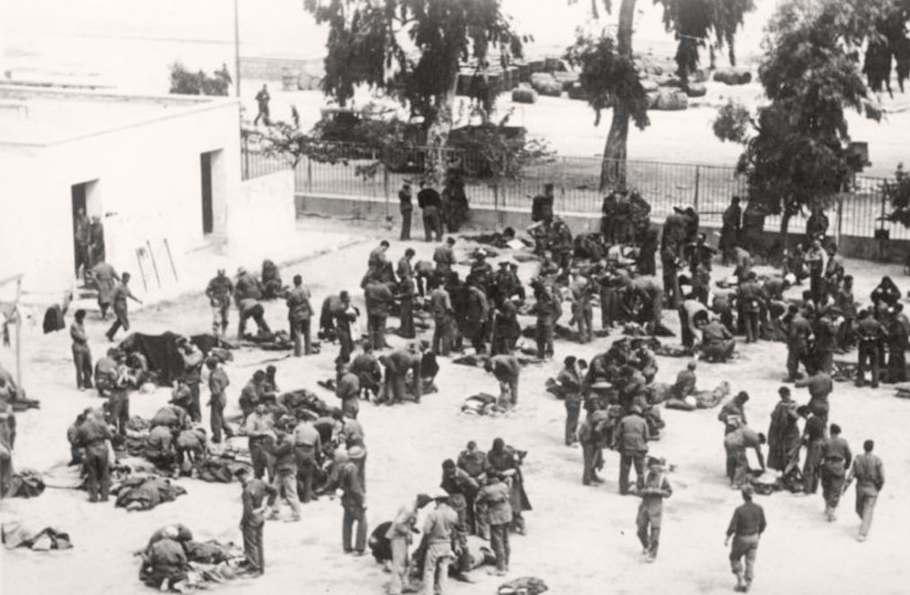 Σύμμαχοι, αιχμάλωτοι των Γερμανών, στο προαύλιο του Γυμνασίου Ναυπλίου το Μάιο του 1941.