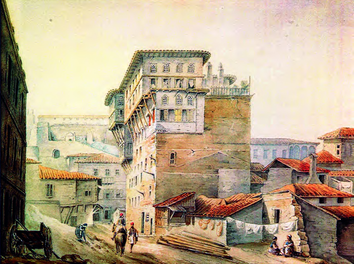 Εικ. 9: Αγνώστου, Εσωτερικό της πόλης του Ναυπλίου (ά μισό 19ου αι.), υδατογραφία (Συλλογή οικογένειας Γ. Φωτόπουλου).