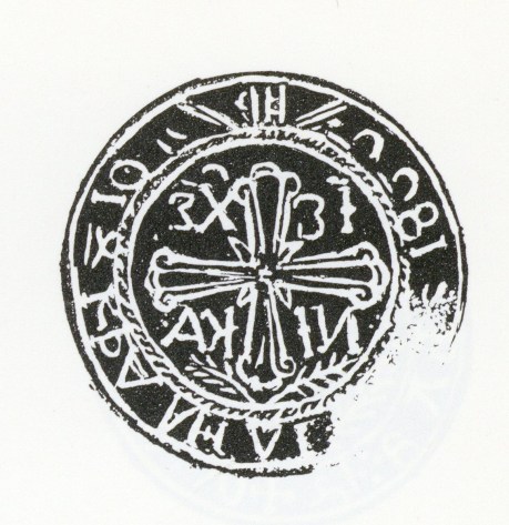 Σφραγίδα στρογγυλή, στο κέντρο της, σε καλλιτεχνική μορφή, απεικονίζεται το ιερό σύμβολο του Χριστιανισμού.