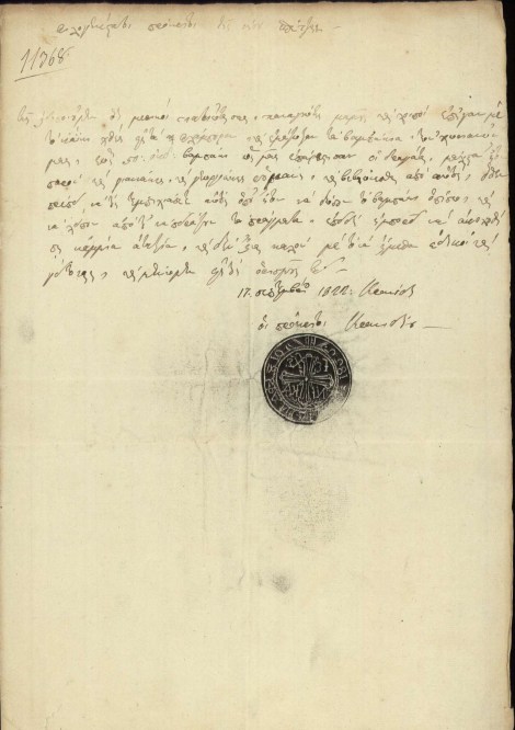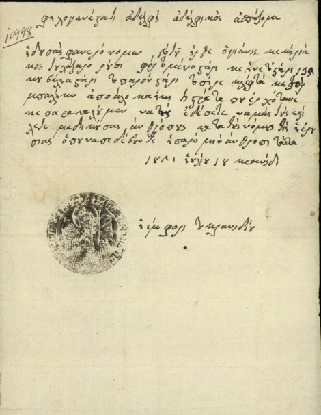 Το παραπάνω έγγραφο που φυλάσσεται στο (Ι.Ε.Ε.) φέρει τη σφραγίδα με την απεικόνιση του Τιμίου Προδρόμου και σ’ αυτό αναφέρεται ο παραλήπτης.[1]