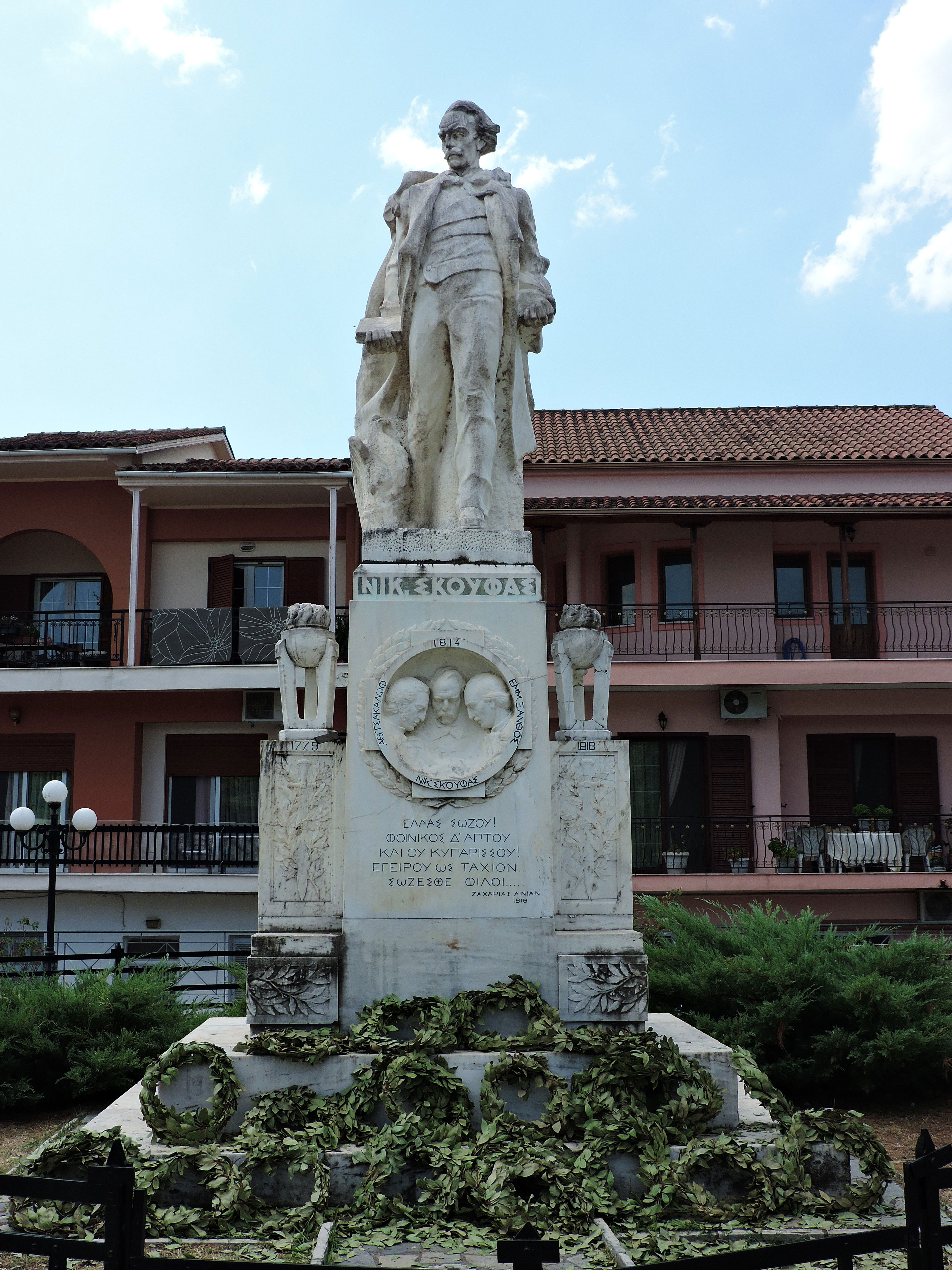 Το άγαλμα του Νικόλαου Σκουφά στην πλατεία του Κομποτίου Άρτας. Έργο του γλύπτη Βάσου Φαληρέα (1905 – 1979).