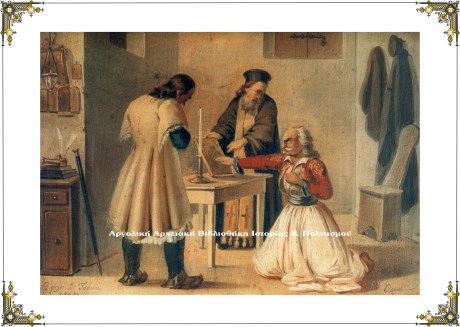 Ορκίζομαι, ότι κατ’ ουδένα τρόπον δεν θέλω ωφεληθή από τα μετρητά της κάσσας της Εταιρείας, αλλά θέλω τα στοχάζομαι ως πράγματα ιερά και αναγκαίον ενέχυρον εις όλον το ταλαίπωρον έθνος μας, καθώς και τα λαμβανόμενα και στελλόμενα γράμματα.