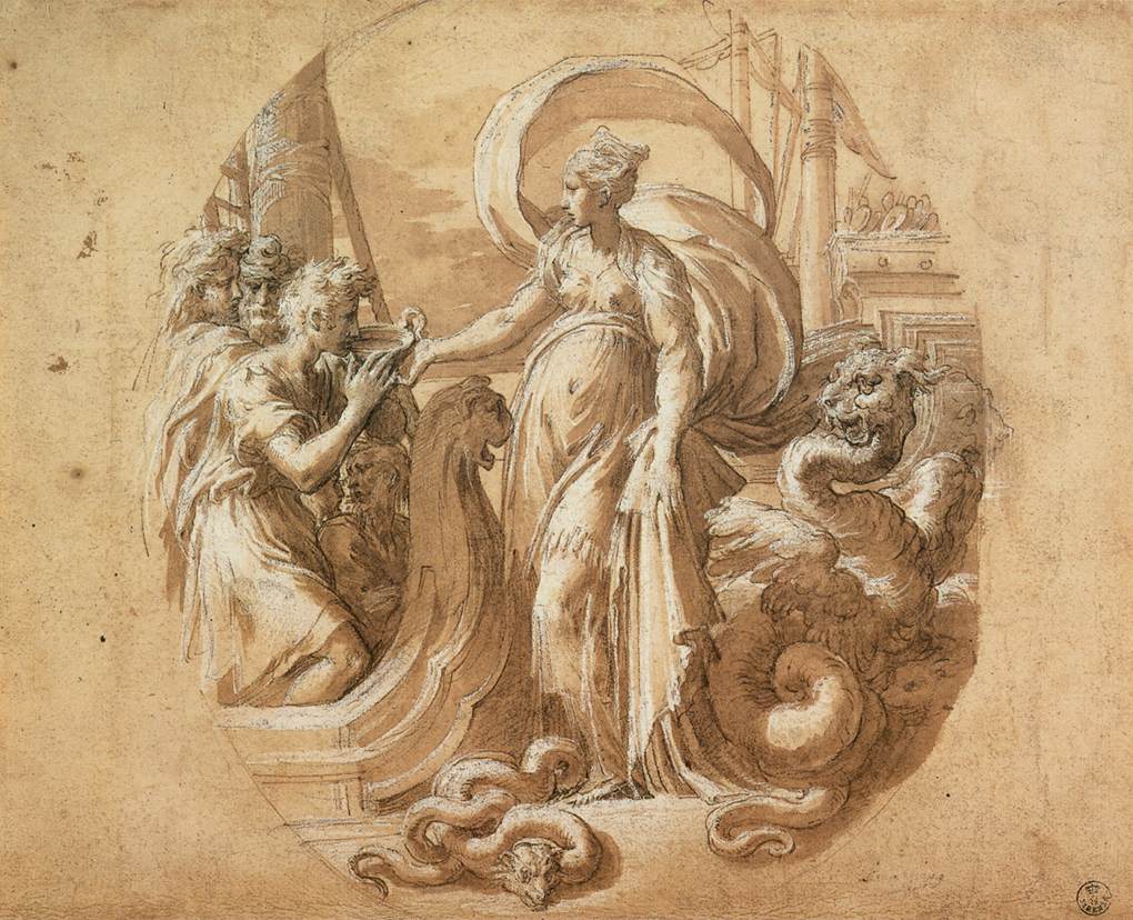 Η Κίρκη και οι σύντροφοι του Οδυσσέα. Έργο του Ιταλού ζωγράφου Παρμιτζανίνο (Parmigianino), Uffizi Gallery.