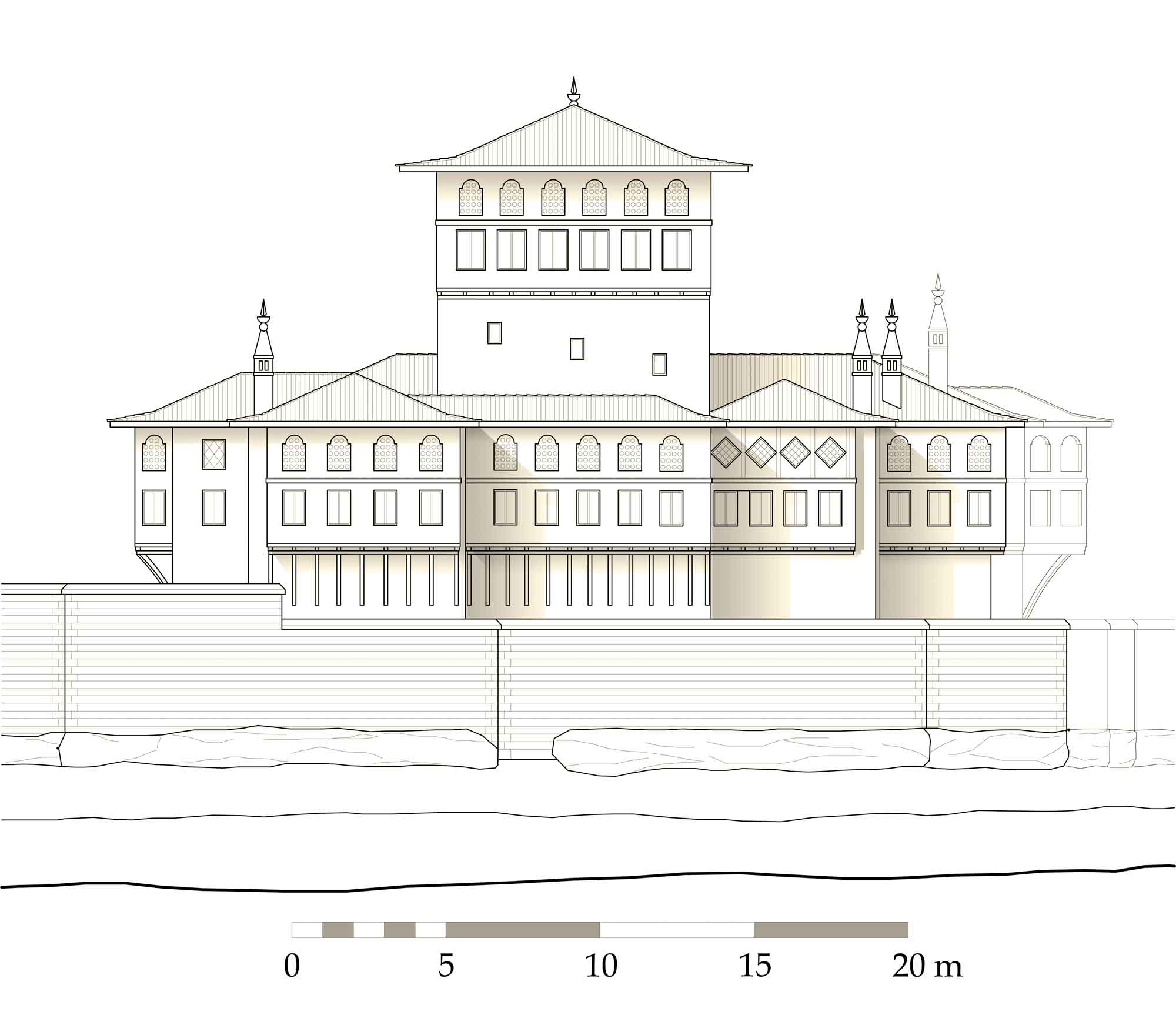 Εικ.10: Χαρέμι: Γραφική αποκατάσταση βόρειας όψης. Κλίμακα 1:500.