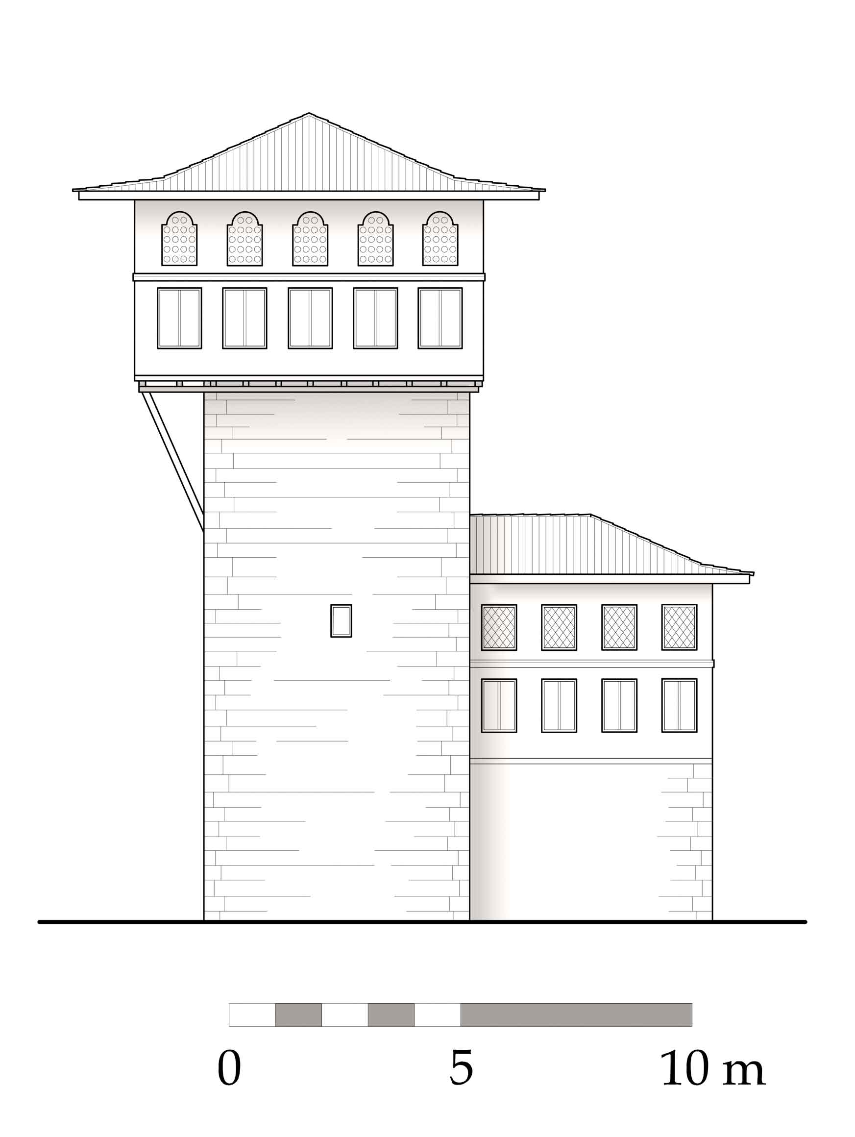 Εικ.8: Πύργος-Μπελβεντέρε: Γραφική αποκατάσταση βόρειας όψης. Κλίμακα 1:500.