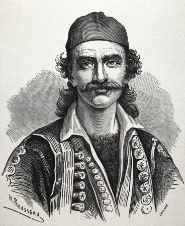 Ανδρούτσος Οδυσσεύς, ξυλογραφία Rousseau H. «Εθνική Επιθεώρησις» (1870-1871) σελ. 325.