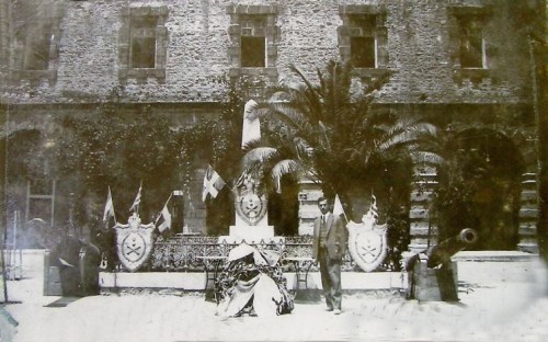 Η αναθηματική στήλη των πεσόντων μπροστά από το σημερινό Αρχαιολογικό μουσείο.