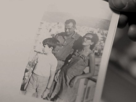 Φωτογραφία του Νίκου Καρούζου με την σύζυγό του Μαίρη Μεϊμαράκη και τον γιο της Αλέξιο Σαββίδη, από το ντοκιμαντέρ για τη ζωή του με τίτλο: Νίκος Καρούζος – «Ο Δρόμος για το Έαρ».
