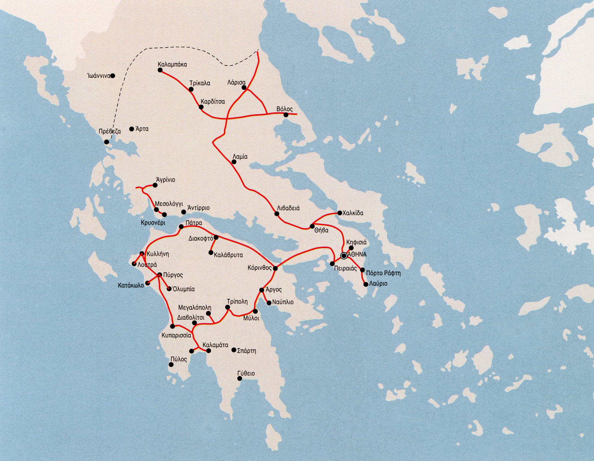 Ο οργασμός των Μεγάλων Τεχνικών Έργων επί κυβερνήσεων Τρικούπη » Χάρτης με τις σιδηροδρομικές γραμμές
