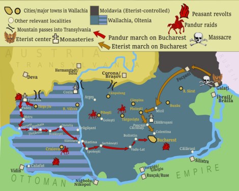 [23] Για το στρατιωτικό συμβούλιο των ηγετών των Επαναστατικών σωμάτων της Ολτένιας στην κωμόπολη Slatina, καθώς και γιά τις αποφάσεις που πάρθηκαν εκεί, βλ. κυρίως I. Neaşcu, Oastea pandurilor…, σσ. 1024-1028· D. Berindei-T. Mutaşcu, οπ.π., σσ. 81-84.