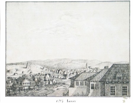 Η Μονή των Τριών Ιεραρχών στο Ιάσιο, σε χαρακτικό του α’ μισού του 19ου αιώνα.Εδώ στις 24 Φεβρουαρίου 1821, ο Αλέξανδρος Υψηλάντης κήρυξε την έναρξη της επανάστασης.
