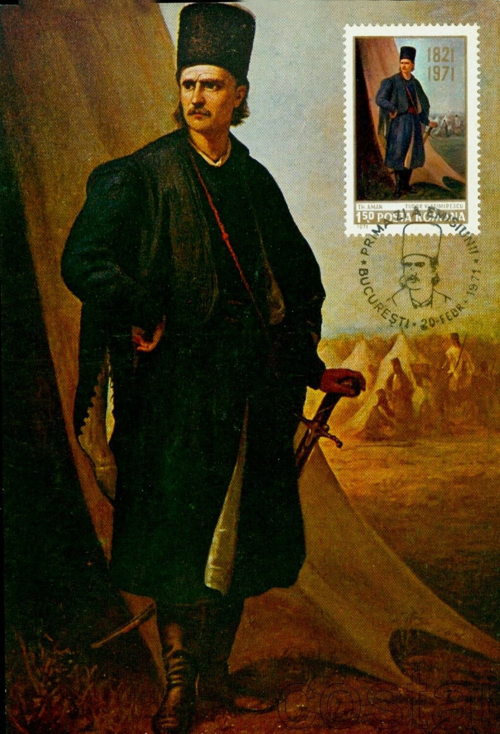 Θεόδωρος Βλαδιμηρέσκου (Tudor Vladimirescu), έργο του Ρουμάνου ζωγράφου, Theodor Aman (1831-1891) και το σχετικό γραμματόσημο που εκδόθηκε το 1971.