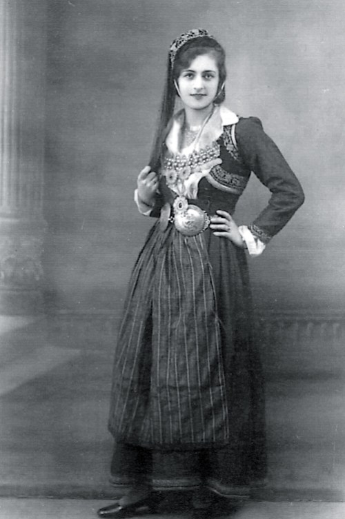 Η σύζυγος του Δημητρίου Αργυρόπουλου, Μυρώ Μιχ. Παλαιολόγου με παραδοσιακή ελληνική φορεσιά. Γυναίκα σπάνιας ομορφιάς, εξελέγη Μις Αθήναι το 1932