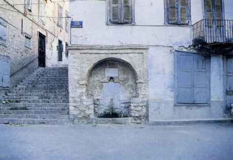 Μικρή κρήνη με αραβική επιγραφή, ενσωματωμένη οε τοίχο σπιτιού σε πάροδο της οδού Καποδιστρίου. Φτιαγμένη με πωρόλιθο, τοξωτή με σκαλότρυπα στο κέντρο της κόγχης της και τρύπα απ’ όπου έβγαινε το νερό πιο παλιά χαμηλότερα. Σήμερα είναι αχρηοτευμένη κι ίσως ξεχασμένη. Φωτογραφία του 1989.