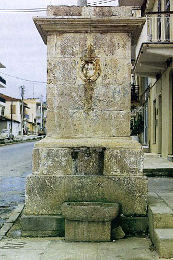 Η Κρήνη στην πλατεία δικαστηρίων στο Άργος (πλατεία Δημητρίου Πλαπούτα). Φωτογραφία του 1989. Σήμερα στερείται του νερού.