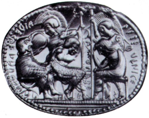 Ο Άδραστος (όρθιος, πάνω αριστερά) σε παράσταση ετρουσκικού σφραγιδόλιθου του 5ου αιώνα π.Χ. Απεικονίζονται τέσσερις ακόμα στρατηγοί που πήραν μέρος στην εκστρατεία Επτά επί Θήβας: ο Παρθενοπαίος, ο Αμφιάραος, ο Πολυνείκης και ο Τυδέας (Κρατικό Μουσείο, Βερολίνο).