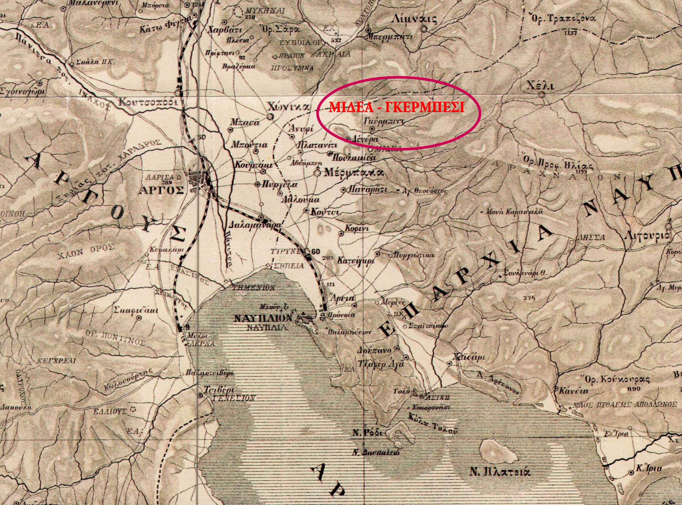 Μιδέα (Γκέρμπεσι) Αργολίδας » Τμήμα χάρτη της Αργολιδοκορινθίας