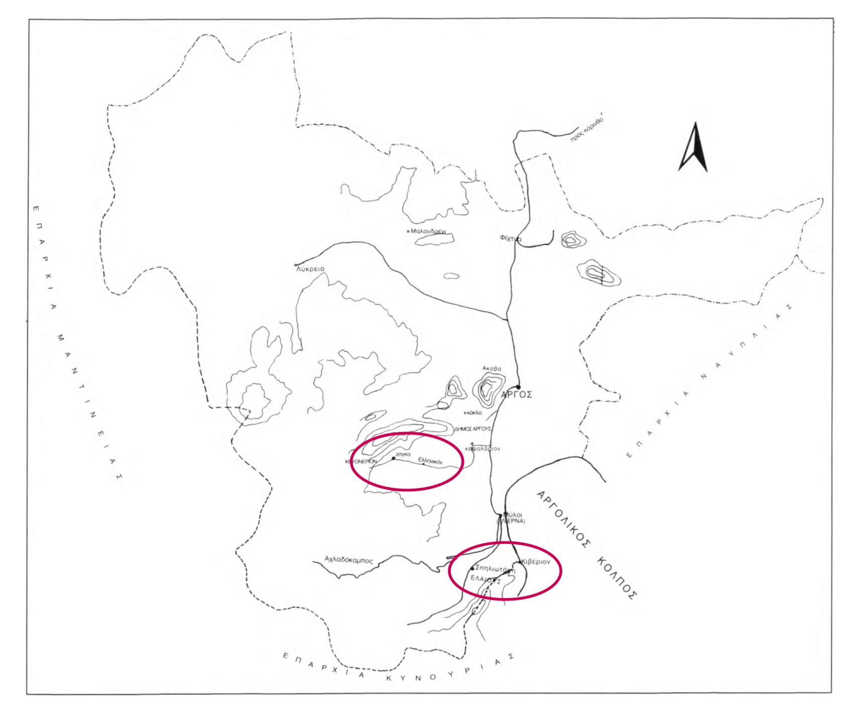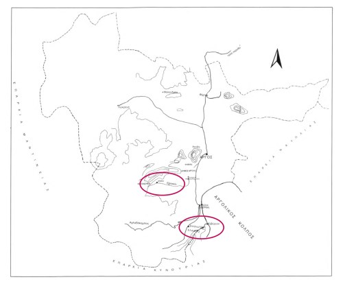 Αργείτικες Κώμες » Χάρτης της επαρχίας τον Άργους με τις περιοχές Σπηλιωτάκη (αρχαίος Ελαιούς) και Ζόγκα