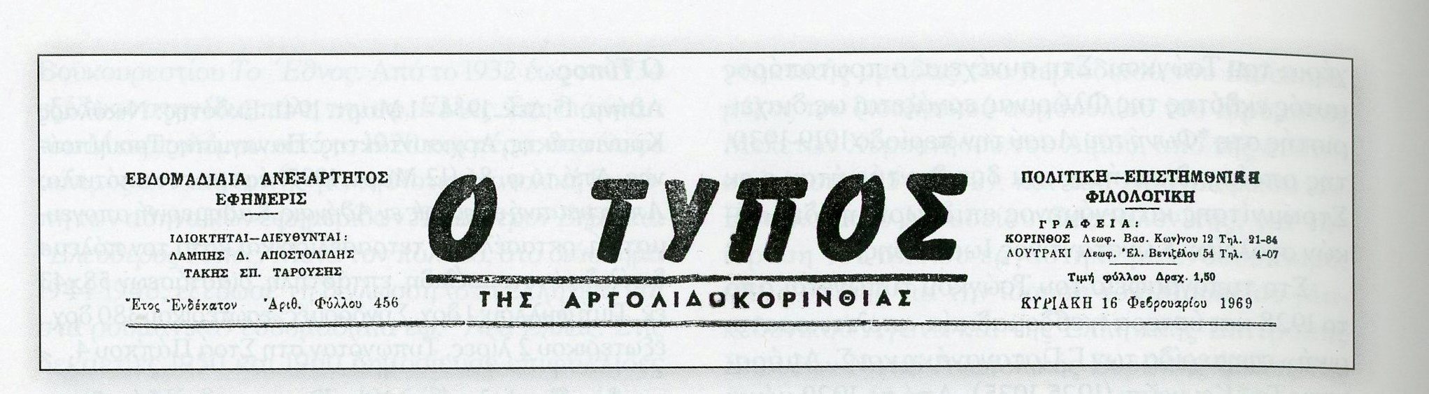 Τύπος της Αργολιδοκορινθίας » Τύπος της Αργολιδοκορινθίας