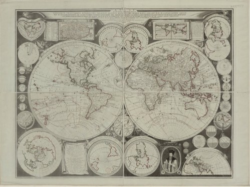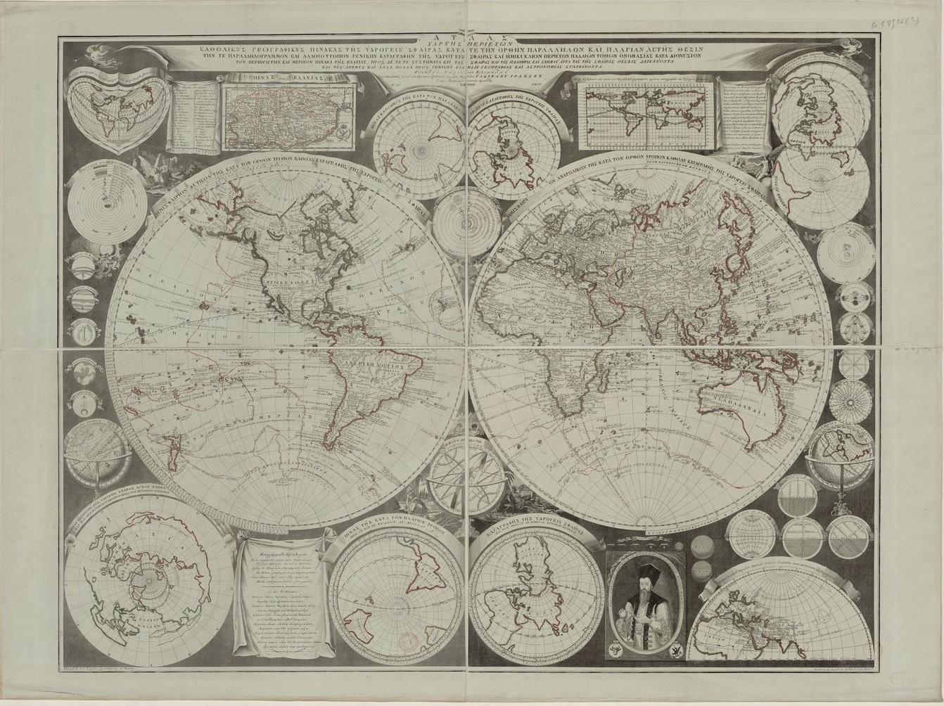 Παγκόσμιος χάρτης του Άνθιμου Γαζή (1800). Αντίτυπο της Εθνικής Βιβλιοθήκης της Γαλλίας.